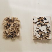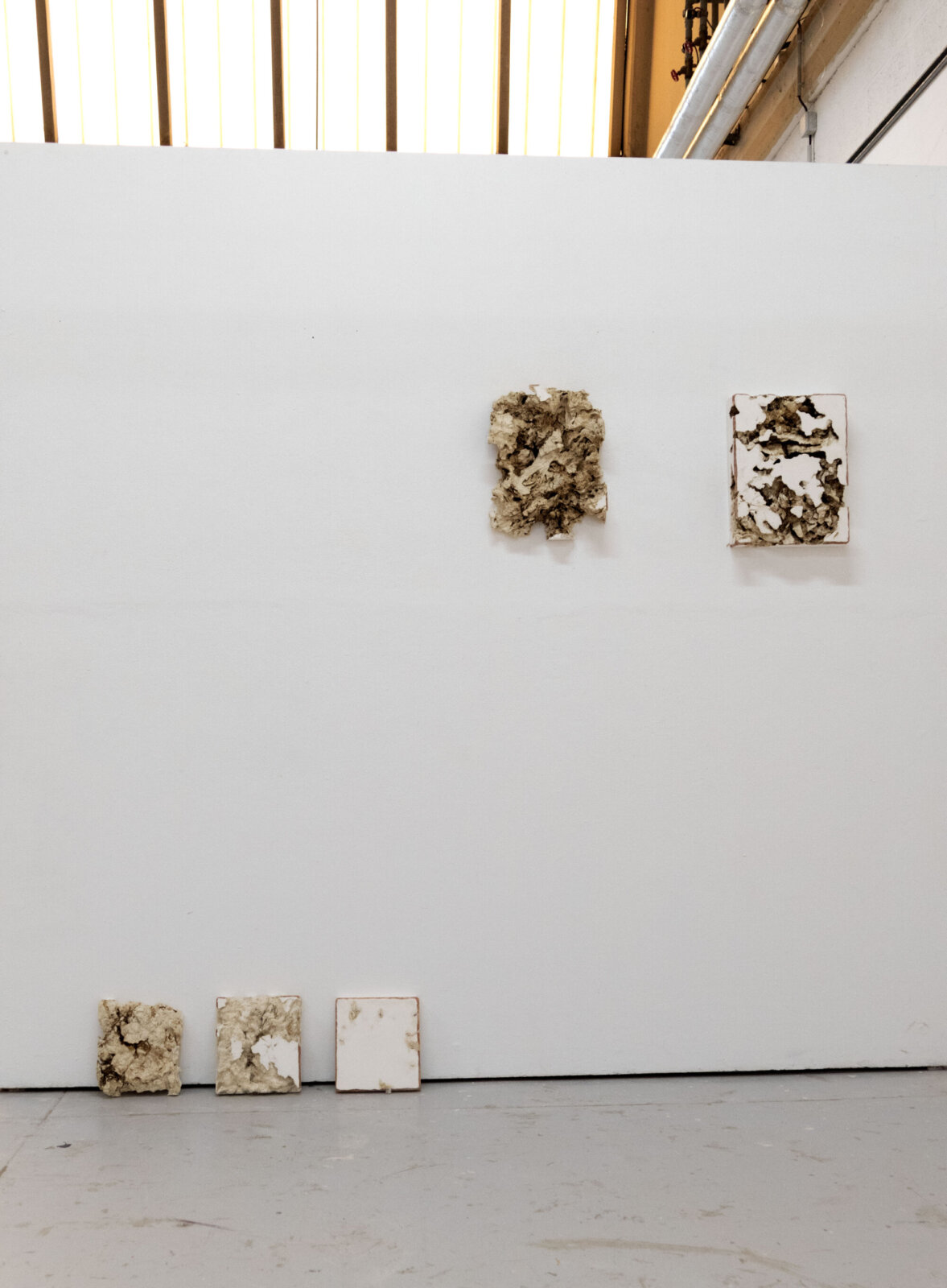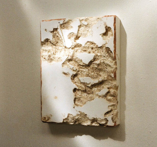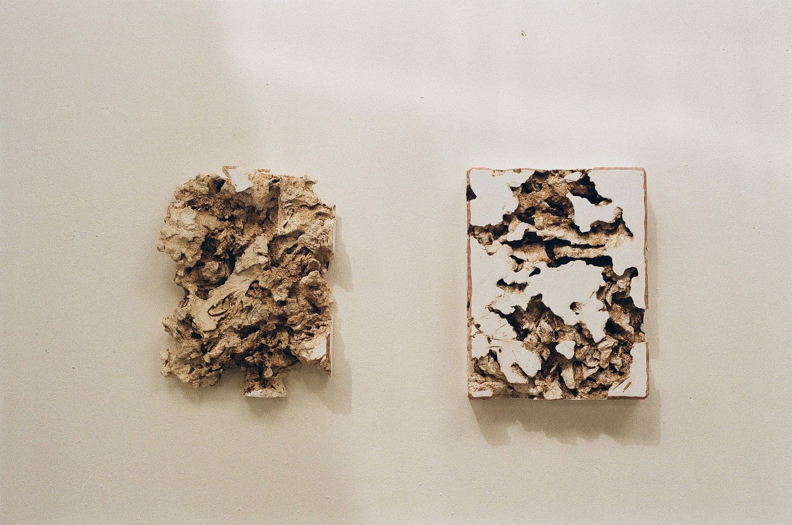 « Construire pour déconstruire, créer puis détruire en souvenir de ce qu’il n’y a plus, pour refaire encore, pour faire croire que tout n’a pas disparu. Il n’y a, peut-être, que des formes qui ne voudraient pas en être, composées puis décomposées pour en faire de nouvelles, encore, pour faire parler des corps qui ne parlent plus, entre matières et matériaux, vivant et minéral. Ici de la laine brute dans du plâtre, retirée, arrachée comme pour s’échapper, fuir l’enfermement, mais des traces, des fragments de sa présence reste pourtant. Jamais elles ne partiront vraiment, elles seront toujours un peu là, jusqu’à ce que le plâtre s’effrite à son tour, se brise, (re)devenant un jour fragment. »